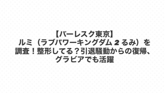【バーレスク東京】ルミ(ラブパワーキングダム 2 るみ)を調査!整形してる?引退騒動からの復帰、グラビアでも活躍