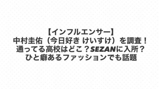 【Tiktoker】中村圭佑(今日好き けいすけ)を調査!高校は?SEZANに入所?癖のあるファッションでも話題