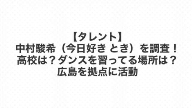 【タレント】中村駿希(今日好き とき)を調査!高校は?ダンスを習ってる場所は?広島を拠点に活動