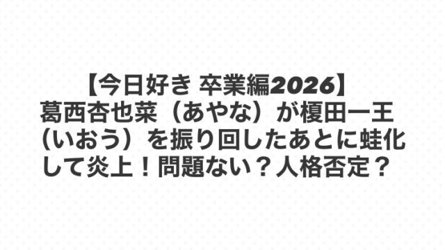 【今日好き 卒業編2026】葛西杏也菜(あやな)が榎田一王(いおう)を振り回したあとに蛙化して炎上!