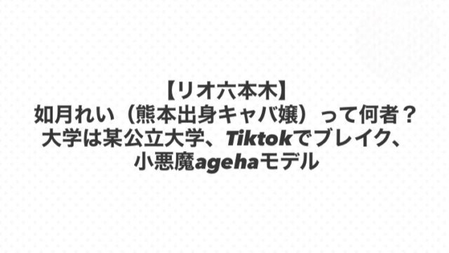 【リオ六本木】如月れい(熊本出身キャバ嬢)って何者?Tiktokでブレイク、大学は某公立大学で小悪魔agehaモデル