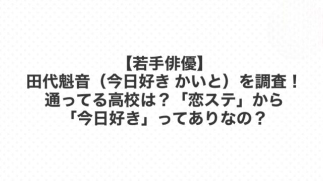 【俳優】田代魁音(今日好き かいと)を調査!高校は?「恋ステ」から「今日好き」ってありなの?
