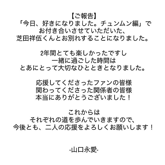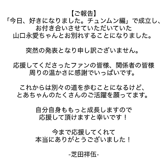 しょうとあの2人は10月16日、Instagramのストーリーでは破局を報告しました。