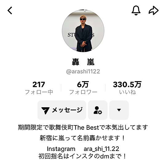 そんなあらしが勤務してる店は歌舞伎町の「The BEST」で、源氏名は“轟嵐(とどろき・あらし)”。
