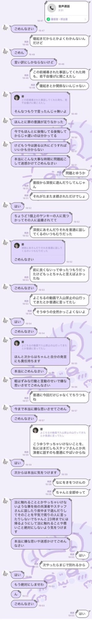 実際、デスドルが載せたLINEのトーク画面らしい画像のなかで、あおいがおうがに補導の暴露を説教する箇所があります。
