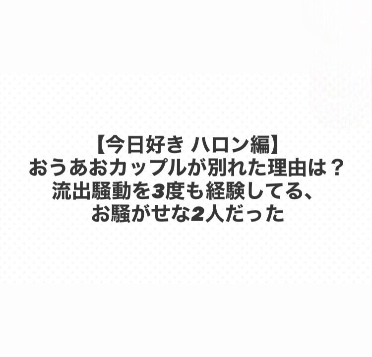 【暴露のあと破局】今日好き おうあおカップルが別れた理由は?流出騒動を3度も経験してる、お騒がせな2人だった