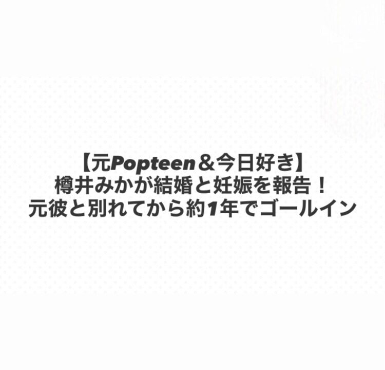 【元Popteen&今日好き】樽井みかが結婚と妊娠を報告!元彼と別れてから約1年でゴールイン