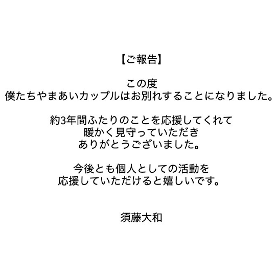 ▪️やまと(須藤大和)の破局報告文