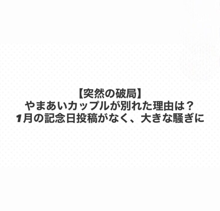 今回は、やまあいカップルの破局についてまとめました。