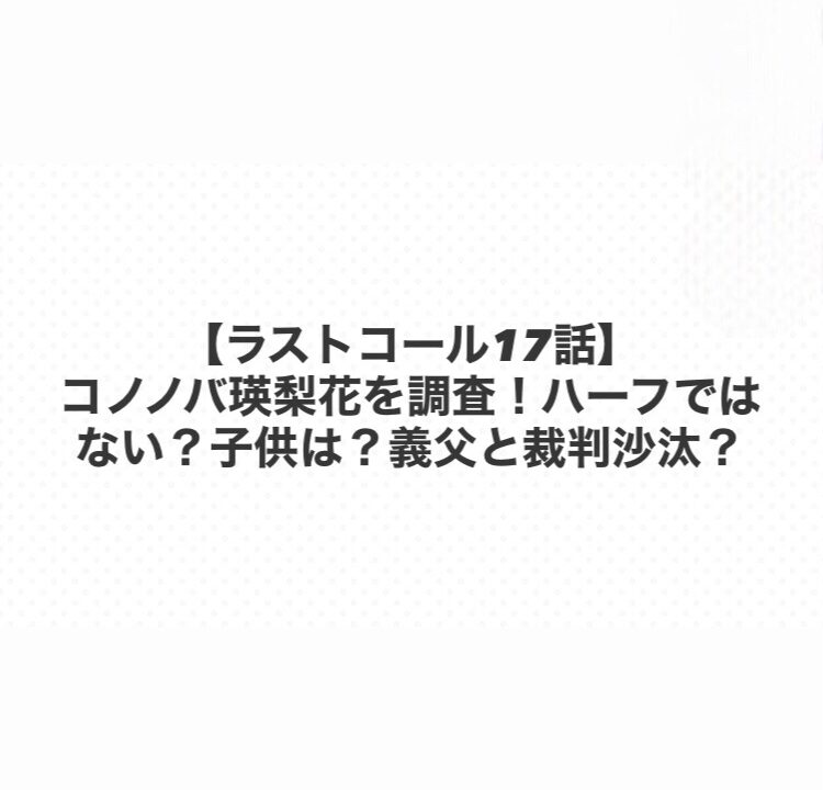 【ラストコール17話】コノノバ瑛梨花を調査!ハーフではない?子供は?義父と裁判沙汰?