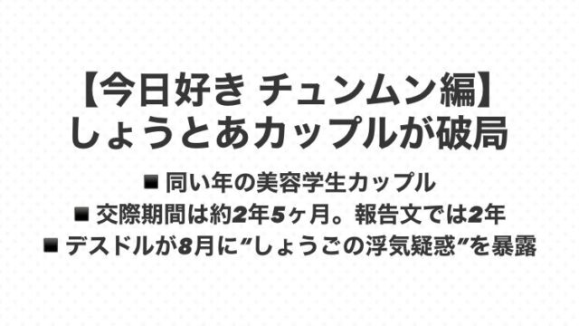 【まさかの破局】今日好き しょうとあカップルが別れた理由は?デスドルが「しょうごの浮気疑惑」を報じて話題に