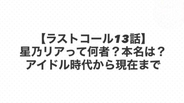【ラストコール13話】星乃リアって何者?本名は?アイドル時代から現在まで