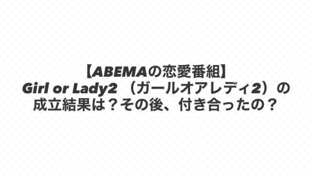 【ABEMAの恋愛番組】Girl or Lady2 (ガールオアレディ2)の成立結果は?その後、付き合ったの?
