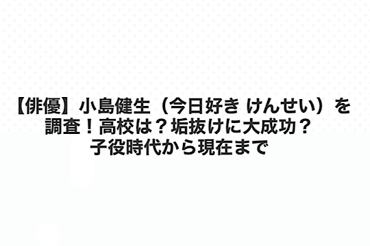 【俳優】小島健生(今日好き けんせい)を調査!高校は?垢抜けに大成功?子役時代から現在まで