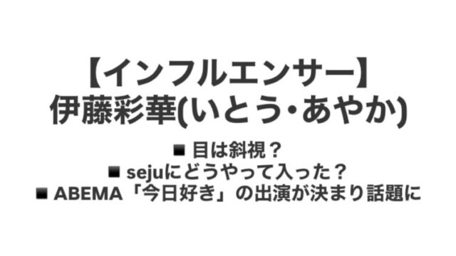 【インフルエンサー】伊藤彩華(今日好き あやか)を調査!斜視?高校は?sejuにはどうやって入った?