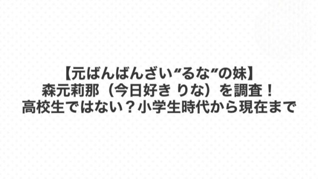 【元ばんばんざい“るな”の妹】森元莉那(今日好き りな)を調査!高校に通ってない?小学生時代から現在まで