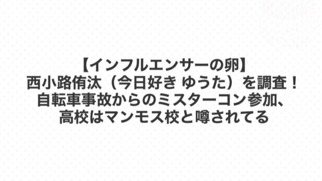 【インフルエンサーの卵】西小路侑汰(今日好き ゆうた)を調査!自転車事故からのミスターコン参加、高校は某マンモス校との噂