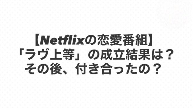 【Netflixの恋愛番組】「ラヴ上等」の成立結果は?その後、付き合ったの?