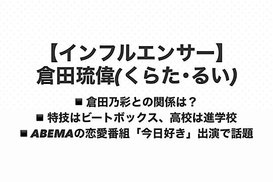 【インフルエンサー】倉田琉偉(今日好き るい)を調査!倉田乃彩との関係は?高校は進学校?